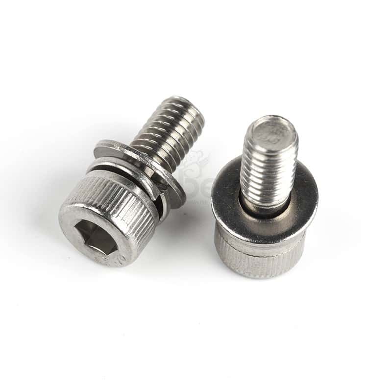 304不锈钢A2-70内六角圆柱头滚花带平弹垫组合螺钉DIN912
